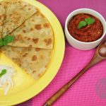 Heat griddle and place rolled paratha on it, fry from both sides with ghee.