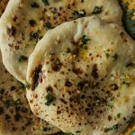 Tawa ya iron pan garam karein aur naan (wet side down) ko halki ancch per paka lein yahan tak ka bubbles ajayein aur bottom sa brown ho jayein phir tawa ko flip karein aur dosri side ko directly chulay per brown or charred hunay tak paka lein.