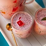 Jug mein ice cubes,colored jelly cubes,cooked sabudana,soaked tukhme balanga & tayyar doodh dal ker ache tarhan mix ker lein & serve karein!