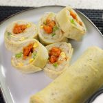 -Cooked chicken dal dein aur mixture ko fold ker ka roll bana lein aur pan ki ek side per move ker lein.