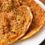 Spread prepared paste,sprinkle dried pomegranate seeds and green gram.