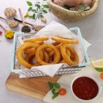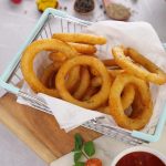 -On a baking paper,pipe out prepared potato mixture through a wide hole making a ring like shape.