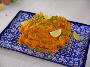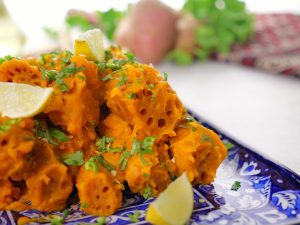 -In same cooking pot, add potato mixture & strained lotus root stem mix gently & cook on medium flame until thickens then add fresh coriander.