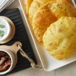 Make small dough balls and rest for maximum 4-5 minutes and then roll them out. Make sure to keep the puri thicker from the center or it would not puff up.