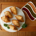 Fill the cone with potato stuffing,apply water on the edges and bring the edges together and seal the edges properly.