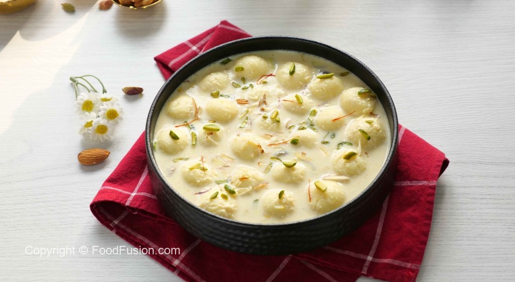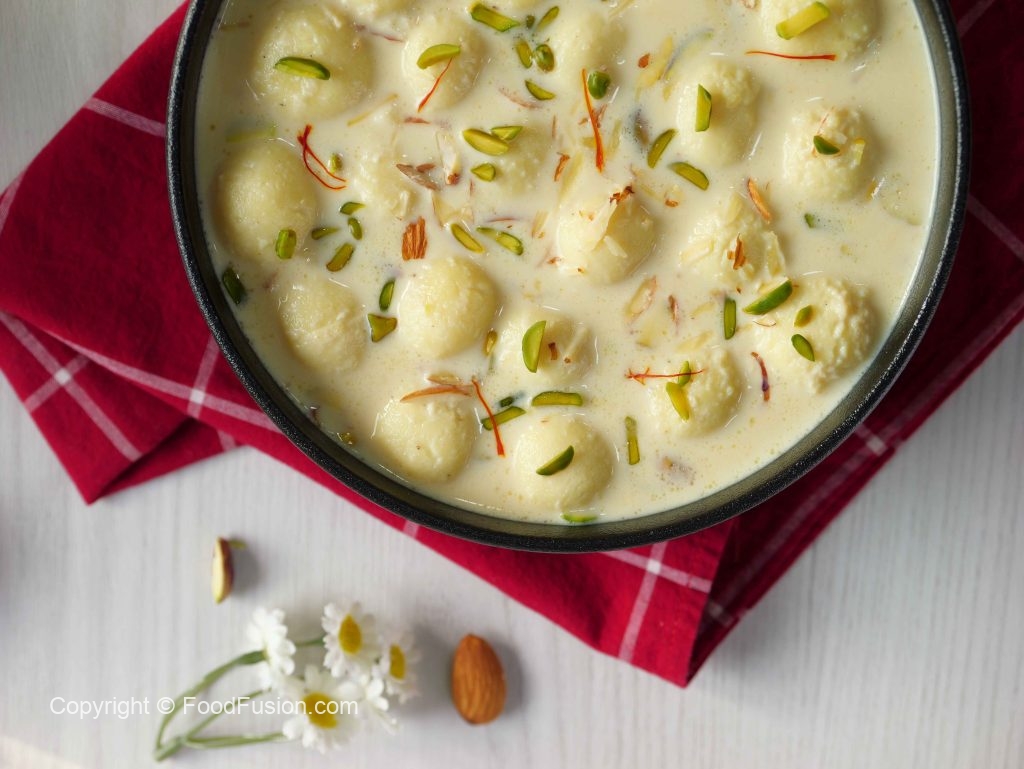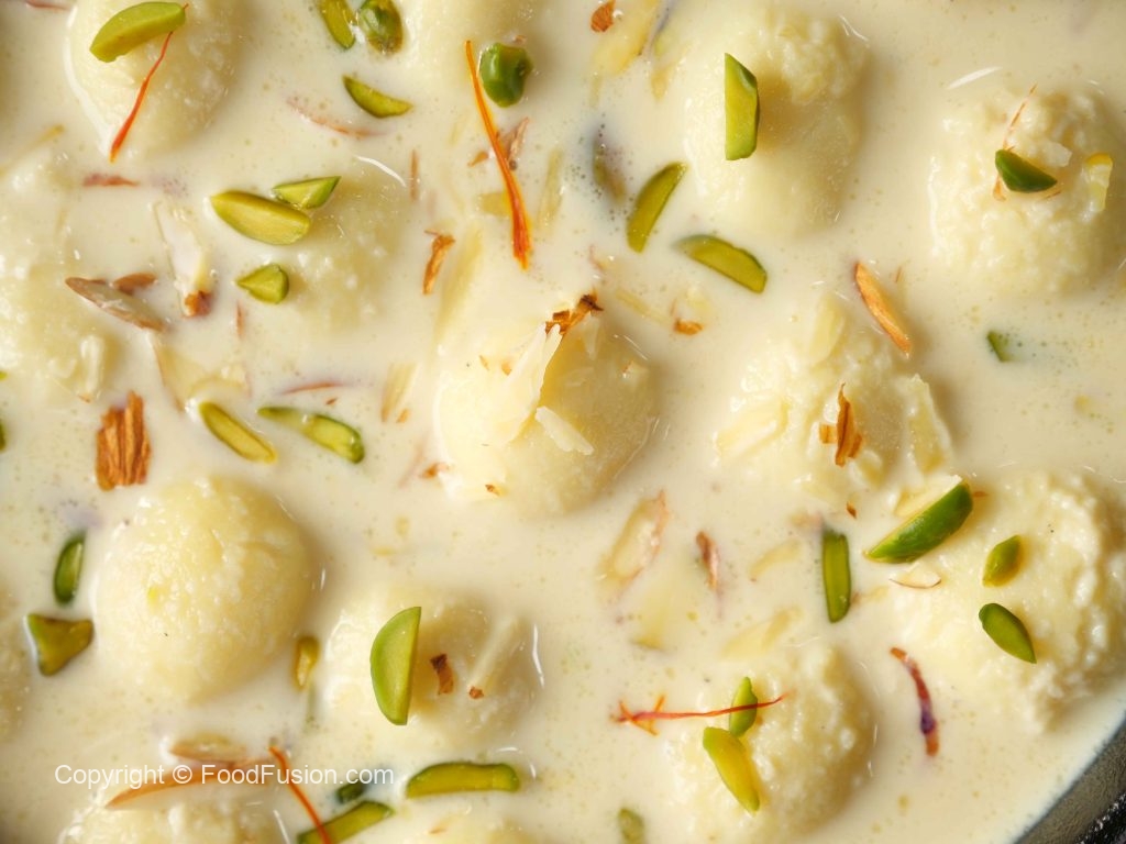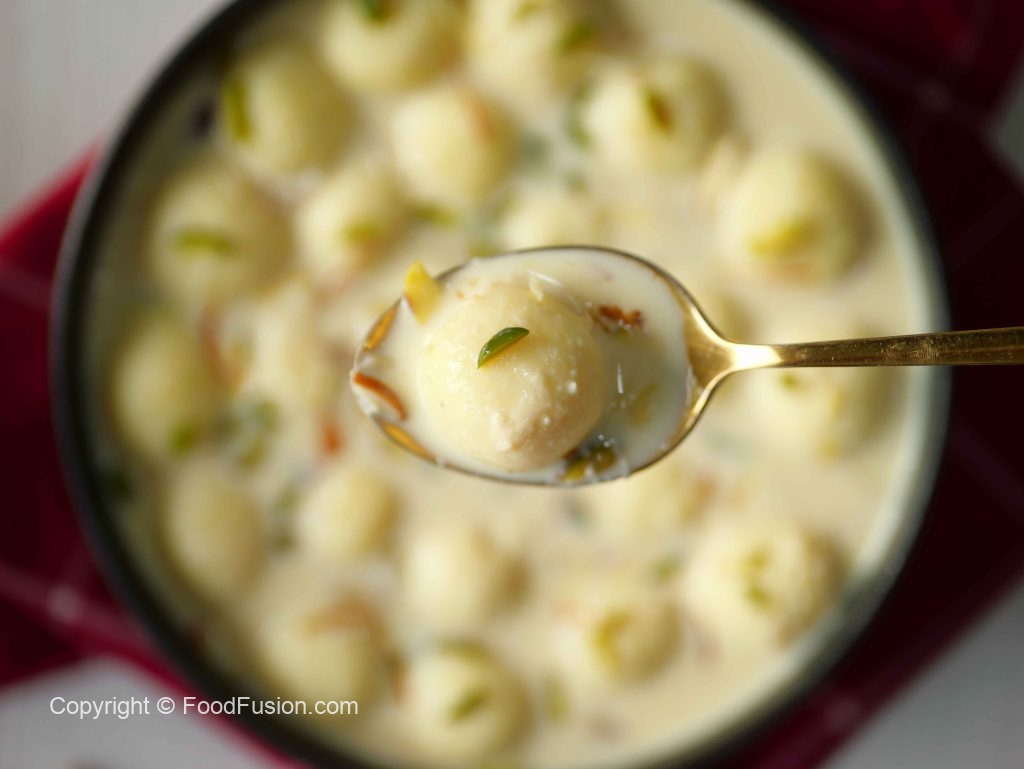 -Boiling doodh mein tayyar balls dal dein aur bohat halki ancch per pakayein yahan tak ka surface par float kernay lagein (don’t stir) aur dhak ker halki ancch per 10 minutes kliya paka lein.