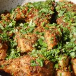Add lemon juice and fresh coriander,cover & let chicken absorb the spices for 2-3 minutes & serve!