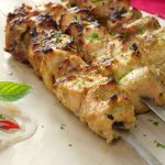 -Chicken pieces ko metal skewers mein lagayein (5 skewers bana lein).