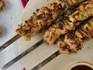 -Put skewers on (burning charcoal) bbq grill and grill from all sides until done & brush oil in between.