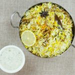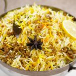 Now for Biryani layers: add mint leaves, green chilies, lemon slices, than add a layer of boiled rice. Sprinkle yellow food color. Cover and cook for 10-15 minutes on low flame.