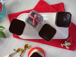 -Upper sa tayyar chocolate ganache pour karein (makes 6) & serve karein!