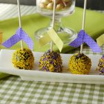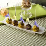 Dip your cake pop sticks into melted cooking chocolate and coat evenly.