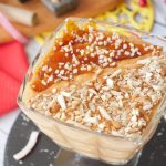 In serving dish,add caramel firni,garnish with almonds,caramel crunch & serve!