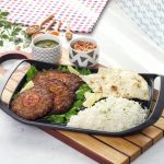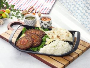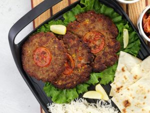 -In a bowl,add beef mince,fat,ginger garlic paste,dried pomegranate seeds,red crush chilli,cumin powder,pink salt,carom seeds,black pepper powder,egg,maize flour,tomatoes,green chilli,fresh coriander, onion & mix until well combined.