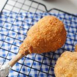 Stuffed chicken lollipops with cheddar cheese cube and mince stuffing & press tightly.