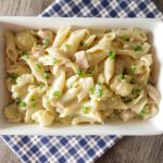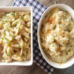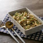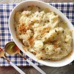 In casserole dish or baking dish,add cooked pasta,breadcrumbs and sprinkle dried parsley.