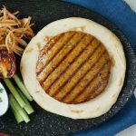 -On baking paper,place meat ball & press,place another butter paper & press with patty presser into flat thin patty (6-inches).