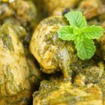 Add Salt and and green yogurt mixture and mix well. Add 2 tbs water and cover to cook for 10-15 minutes until chicken is tender.