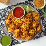 -In a wok,heat cooking oil & fry pakoray on medium flame until golden & crispy.