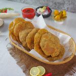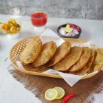 -Dust dry flour & roll out with the help of a rolling pin, make 5 inches puri. (Makes 13-14)