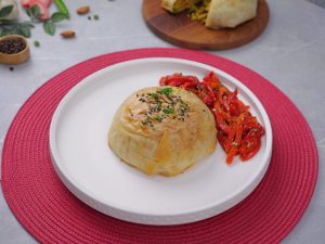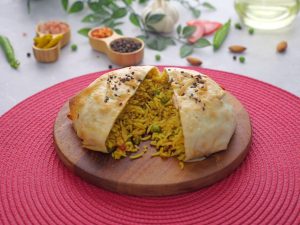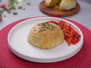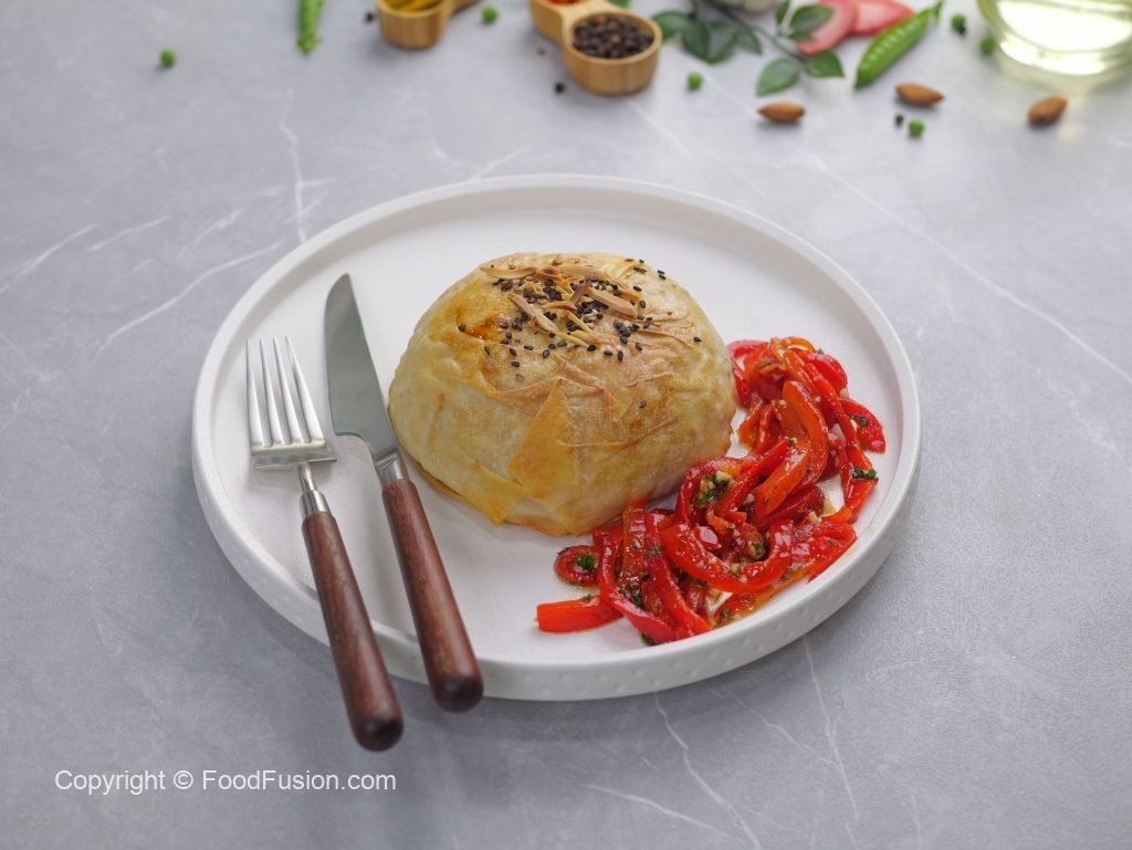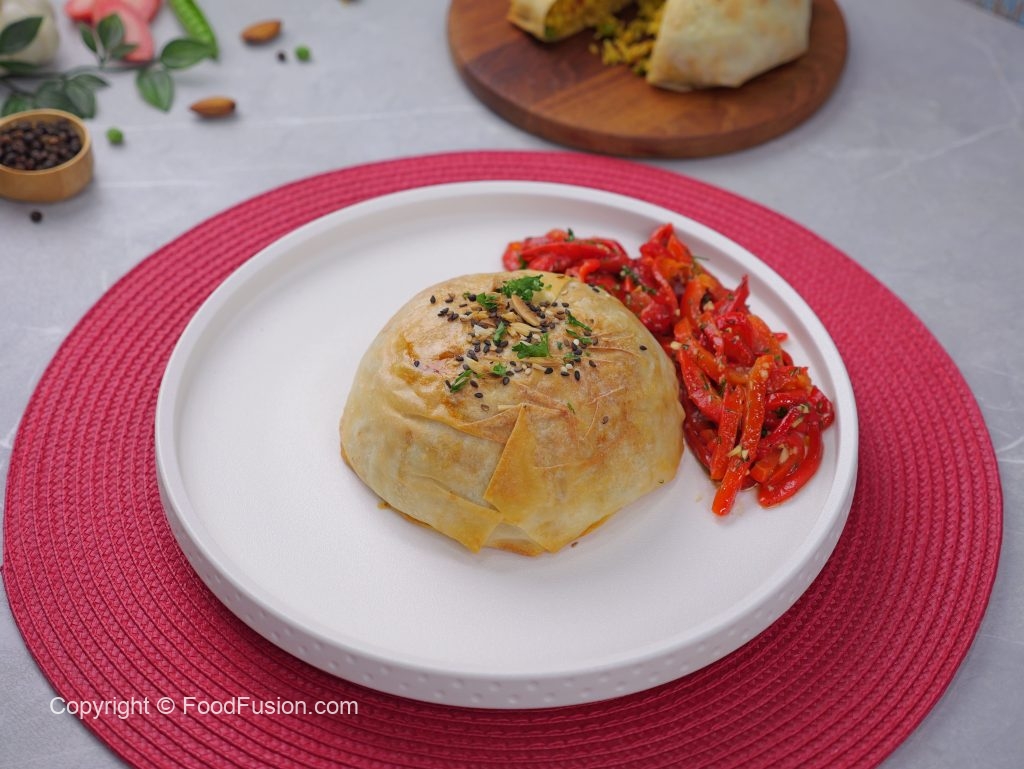Ramzan Special! Flaky Ouzi Pockets filled with fragrant rice, served with a vibrant Turkish Roasted Bell Pepper Salad — perfect for your iftar table! #RamzanSpecial #FoodFusion #IftarDelights #turkishrecipe