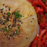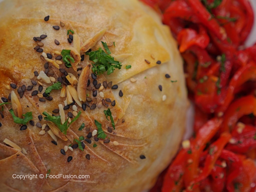Crispy Ouzi Pockets with Turkish Roasted Bell pepper Salad