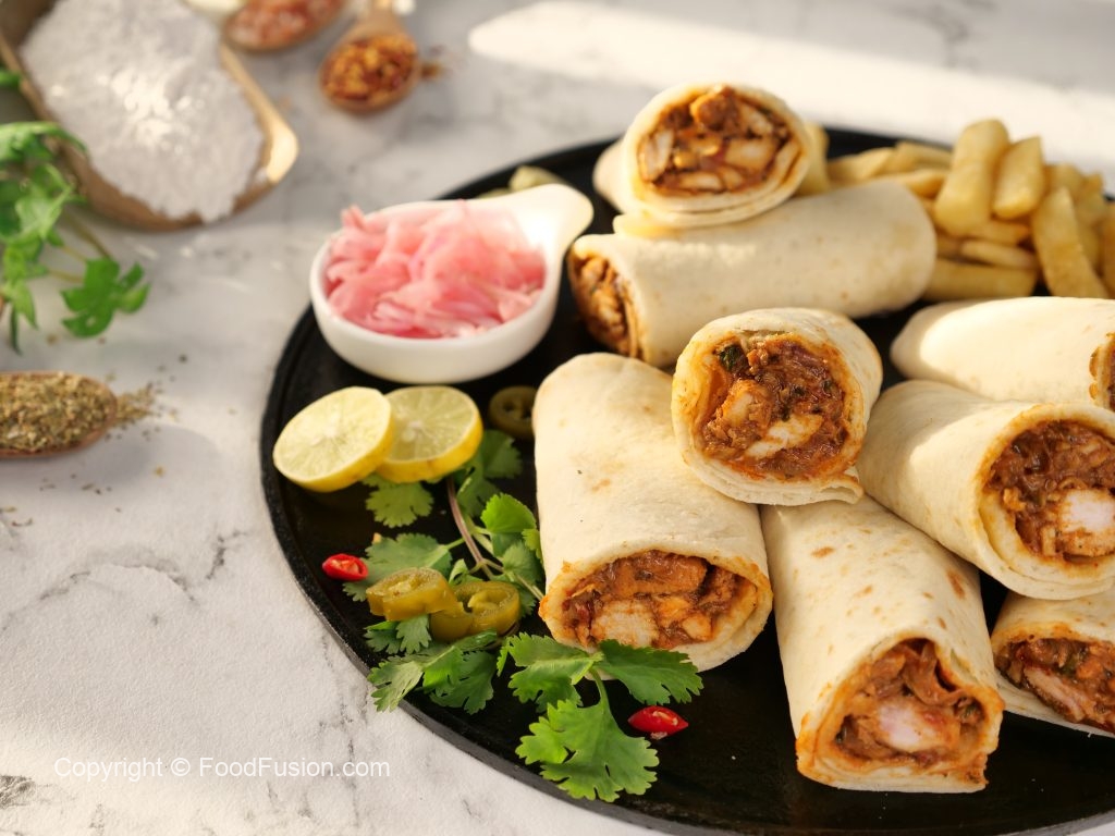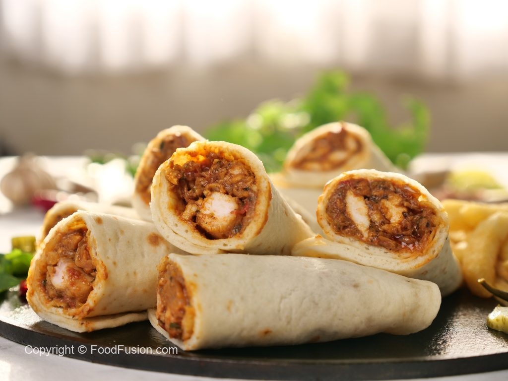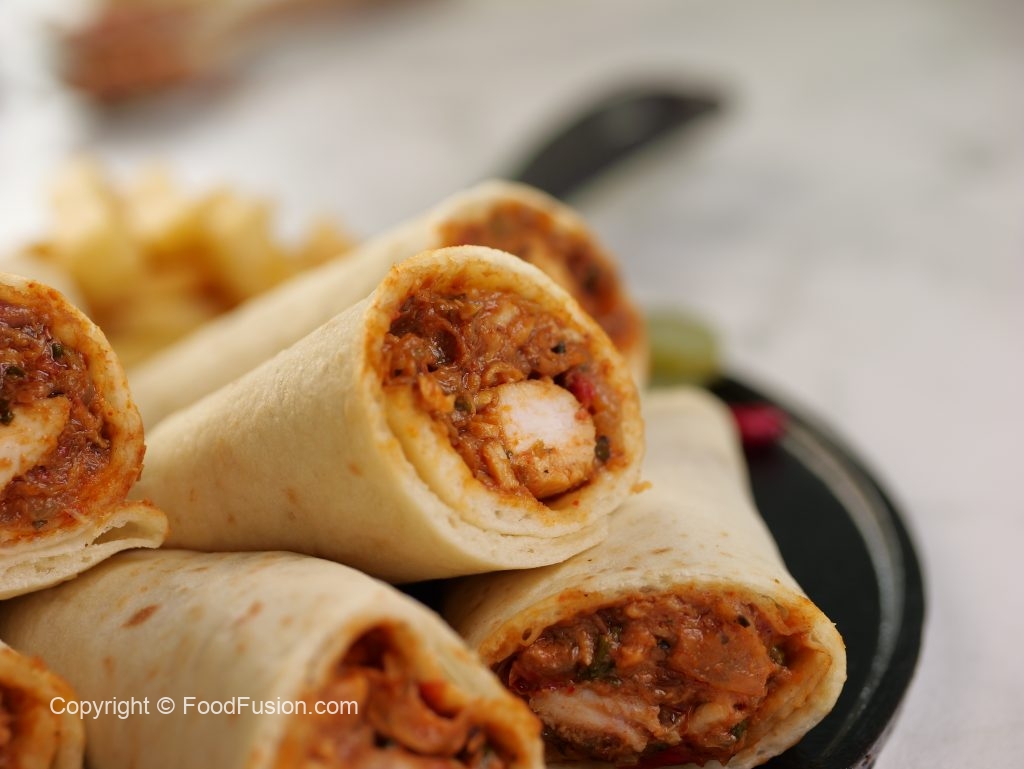 -Shawarma bread per mayonnaise dal ker pheela lein aur cooked chicken dal ker roll ker lein.
