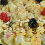 Dish out and sprinkle chart masala, almonds (chopped) and garnish with berries.