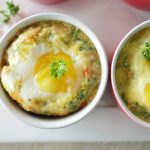 In ramekins or oven safe bowls,add prepared egg mixture.