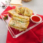 -Mozzarella cheese,fresh parsley aur lal mirch crushed dal ker dhak dein aur halki ancch per cheese melt ho janay tak paka lein (makes 2) & serve karein!