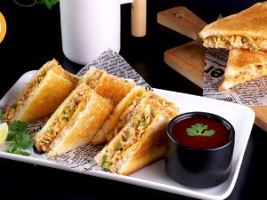 -Ek aur bread slice rakh dein aur bread ko carefully flip ker lein.