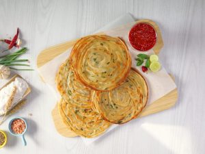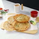 Hara Pyaz Lacha/Thread Paratha with Kathiawari Chutney