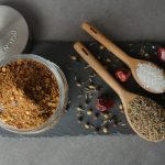 Mortal & pestle mein roasted zeera aur sabut dhania dal ker coarsely crush ker lein.
