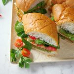 -Tayyar pesto,mortadella slices,cheese slices,tamatar,rocket leaves,olive oil,pink salt aur kali mirch powder dal dein aur top bread se cover karein.