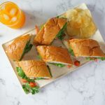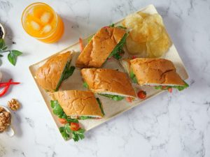 -Tayyar pesto,mortadella slices,cheese slices,tamatar,rocket leaves,olive oil,pink salt aur kali mirch powder dal dein aur top bread se cover karein.