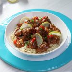 -Garnish with green onion leaves,lemon slices,sesame seeds & serve with noodles,spaghetti or rice!