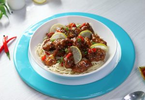 -Garnish with green onion leaves,lemon slices,sesame seeds & serve with noodles,spaghetti or rice!