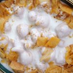-In a serving dish,add soaked phulki,prepared meethi dahi,sprinkle chaat masala,garnish with papri & serve!
