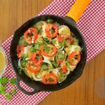 Now spread onion (round slices), tomato (slices), jalapenos and garlic (chopped).