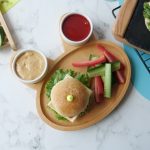-Cut smini burger buns from center,add & spread prepared burger sauce,lettuce leaf,cheese slice,tomato slice,onion rings,fried chicken nugget,cucumber slices,tomato ketchup,burger sauce and top with another mini bun to make a burger (makes 8-10).