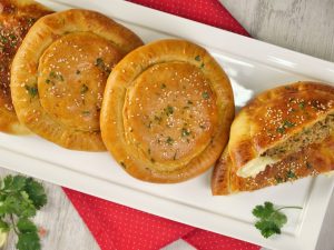 -Apply egg yolk mixture & sprinkle sesame seeds (makes 5).