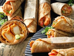 Fried khoya,green colored chawal,red colored chawal aur yellow colored chawal dal dein.