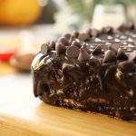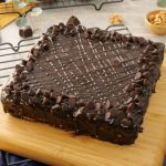 -Cake ko cake pan sa nikal lein,remaining chocolate ganache & chocolate chips dal ker serve karein!