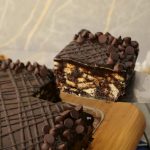 -Transfer the mixture to a greased loose bottom square cake pan (8 x 8 inches),spread evenly & refrigerate for 30 minutes.