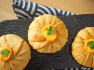 Take a small dough,sprinkle dry flour and roll out with the help of rolling pin & prick with fork then cut with round cutter.