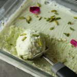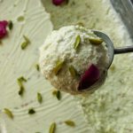 Once frozen completely,scoop out,decorate with pistachios & serve!