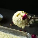 Coarsely chop pistachios on a clean cutting board with the help of knife & set aside.