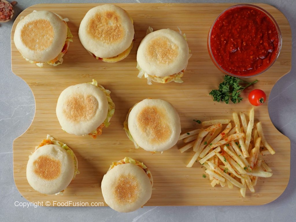 Homemade Pita Bun with Crispy Chicken — soft, fluffy buns packed with crunchy chicken and tasty fillings. A perfect back-to-school lunchbox idea that’s fun, filling, and kid-approved! #happycookingtoyou #foodfusion #araywahh #lunchboxideas #backtoschool #pitabun