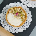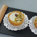 -In a small flat base bowl,place a cling film,add warm vermicelli mixture & press it with the help of wooden pie presser to make a shape of bowl & refrigerate until set (15 minutes) than remove carefully.