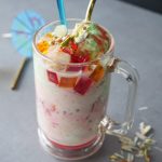 Serving glass mein falooda sev,tukh malanga,lal sharbat,tayyar rabri doodh,yellow jelly,red jelly,pista ice cream scoop,falooda sev,tukh malanga,pineapple chunks,red jelly,yellow jelly,lal sharbat,badam aur pista dal ker serve karein.